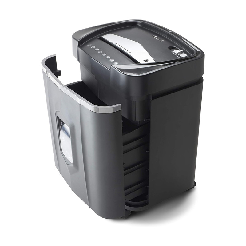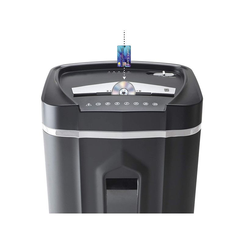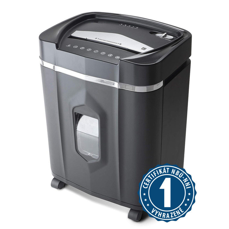Skartuje papír, sešívací sponky, plastové karty a CD/DVD Rozměry: 366 × 280 × 491 mm Hmotnost: 10,2 kg