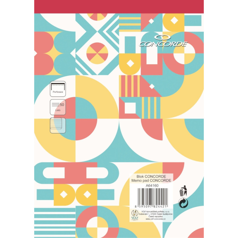 lepený blok s perforací ve formátu A4, linkovaný, obsahuje 50 listů bezdřevého bílého papíru o gramáži 55 g/m2, se šířkou linky 8 mm, má atraktivní design a červený hřbet, který označuje linkovaný blok
