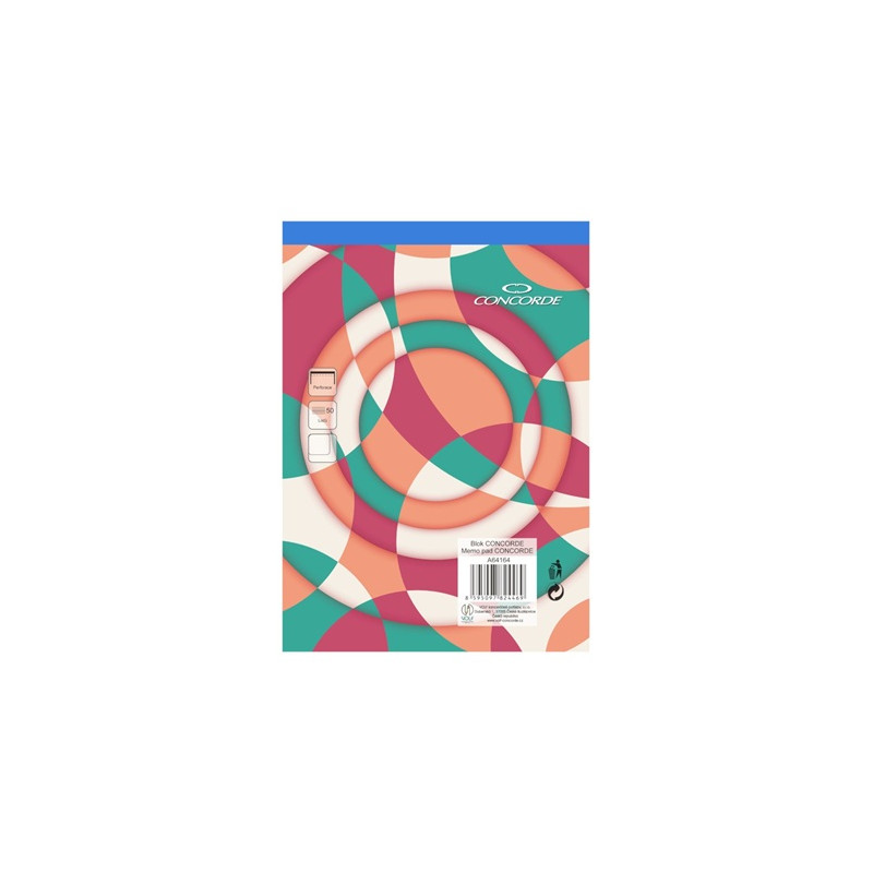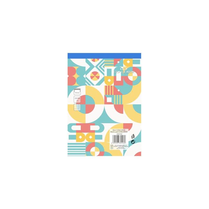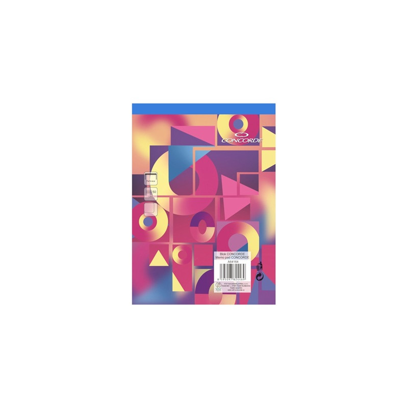 Lepený blok s perforací ve formátu A5, čistý. Obsahuje 50 listů bezdřevého bílého papíru o gramáži 55 g/m2. Má atraktivní design a modrý hřbet, který označuje čistý blok.