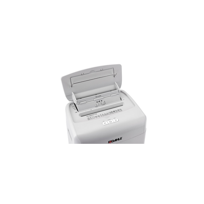 Výkonný skartovač s automatickým podavačem až na 90 listů je ideální pro menší pracovní týmy. Spolehlivě likviduje dokumenty s důvěrnými informacemi, poradí si s drátky ze sešívaček i s platebními kartami a díky příčnému řezu 4 × 12 mm zajišťuje bezpečné zničení materiálů. Nevyžaduje mazání, nabízí indikaci přetížení, přehřátí i plného koše a při manuálním podávání zvládne pracovat až 60 minut v kuse. Bezpečnostní úroveň P-4 / F-1 / T-4 / E-3, NNI 1.