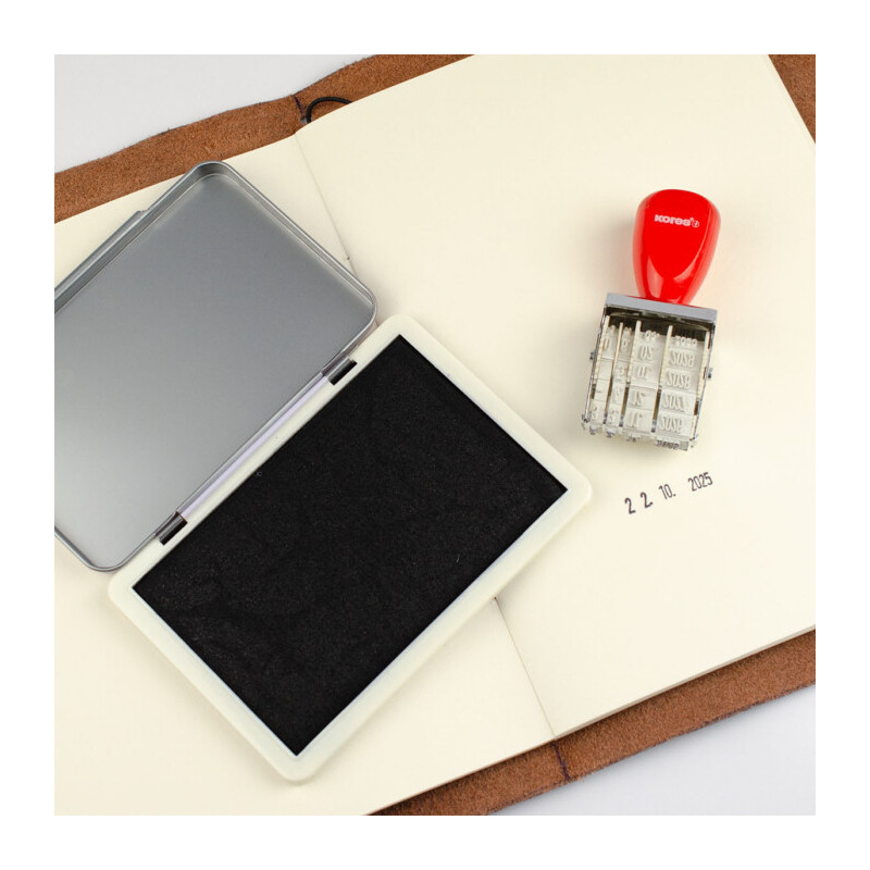 nastavitelné datum – den, měsíc a rok, měsíc v číselném formátu pro snadnou orientaci, výška číslic 4 mm pro jasně čitelný otisk, kompaktní a přesné datumové značení, vhodné pro kancelářské, administrativní i komerční použití