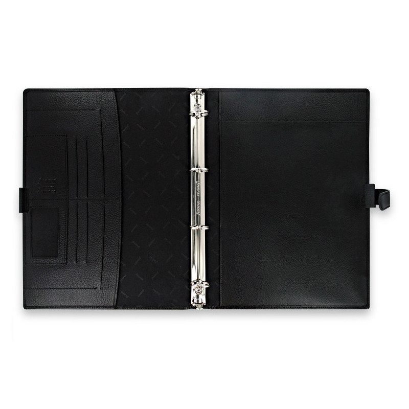 Diář Finsbury má svůj osobitý styl. Luxusní zrnitá a ručně dobarvovaná kůže, na dotek příjemný povrch a dokonalé provedení, to jsou hlavní přednosti tohoto diáře. Obsah: kalendář týden/2 strany, sloupce, 5jaz, krémové, rozřazovače 1–6, pravítko/záložka, seznam úkolů (4 listy), bílé linkované papíry (8 listů), bílé čtverečkované papíry (4 listy), bílé čisté papíry (8 listů), adresář (8 listů), linkovaný poznámkový blok, průhledná obálka, kapsa na poznámkový blok, poutko na pero, 7 kapes na karty, 1 vertikální kapsa, poutko na pero, kapsička na vizitku. Obsah: Hloubka - 40mm, Šířka - 255mm, Výška - 320mm