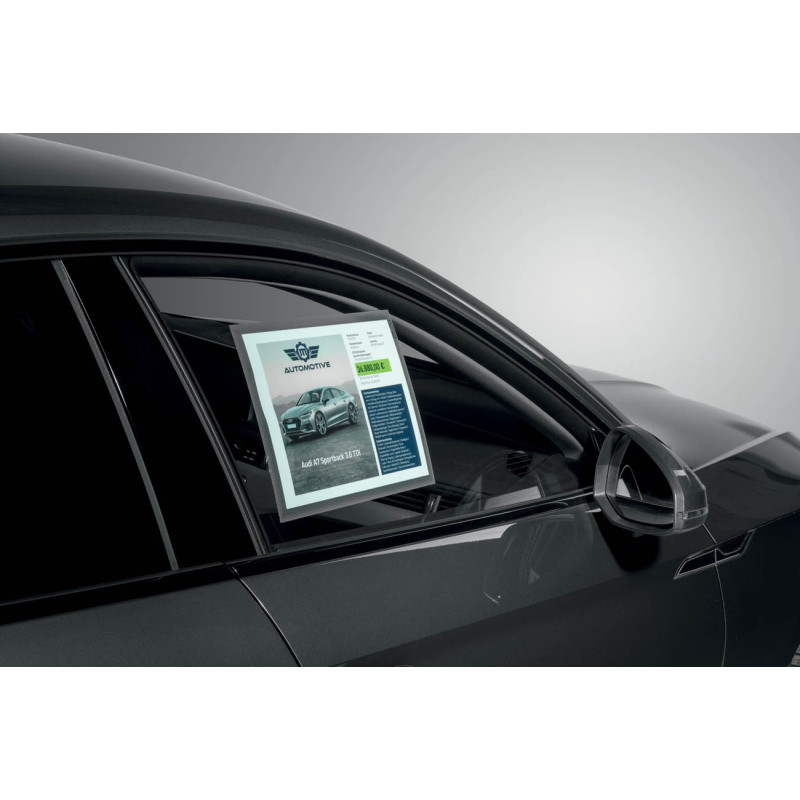 odnímatelná, přemístitelná, opakovaně použitelná kapsa, která přilne díky statické elektřině na akrylové, PVC a skleněné povrchy a to i zakřivené jako jsou autoskla,, snadná instalace, snadné vkládání a výměna dokumentů díky průřezu na zadní straně, odolná až do cca 70°C, UV odolnost až 2 roky, čitelnost jen z přední strany, použití např. v automobilovém průmyslu, pro výlohy obchodů, cestovních či realitních kanceláří, pro recepce hotelů apod.
