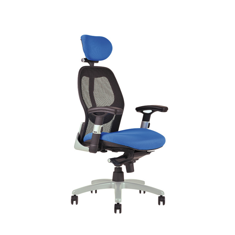 kancelářská ergonomická židle, synchronní mechanismus se 4 polohami blokace, nastavení výšky sedáku, výškově a hloubkově stavitelná bederní opěrka, nastavení síly protiváhy podle své hmotnosti, nastavení výšky a úhlu hlavové opěrky, univerzální kolečka pro tvrdou podlahu i koberec, 3 roky záruka, nosnost 130 kg, v barevném provedení: černá, modrá, vínová a oranžová, barvu potahu dopište do poznámky objednávky