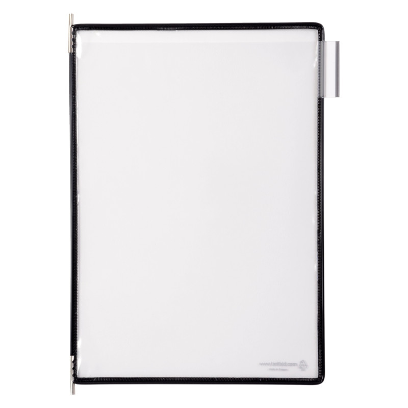 nerozbitný flexibilní odolný rámeček s kapsou, oboustranný pro systémy Tarifold, vyztužený ocelovým drátem, rychlé upevnění kovovými úchyty, vhodný do průmyslu, chrání dokumenty před nečistotami a vlhkem, snadná výměna dokumentů, formát A4 otevřený shora, antireflexní odolné PVC, 5 indexových záložek, 10 ks