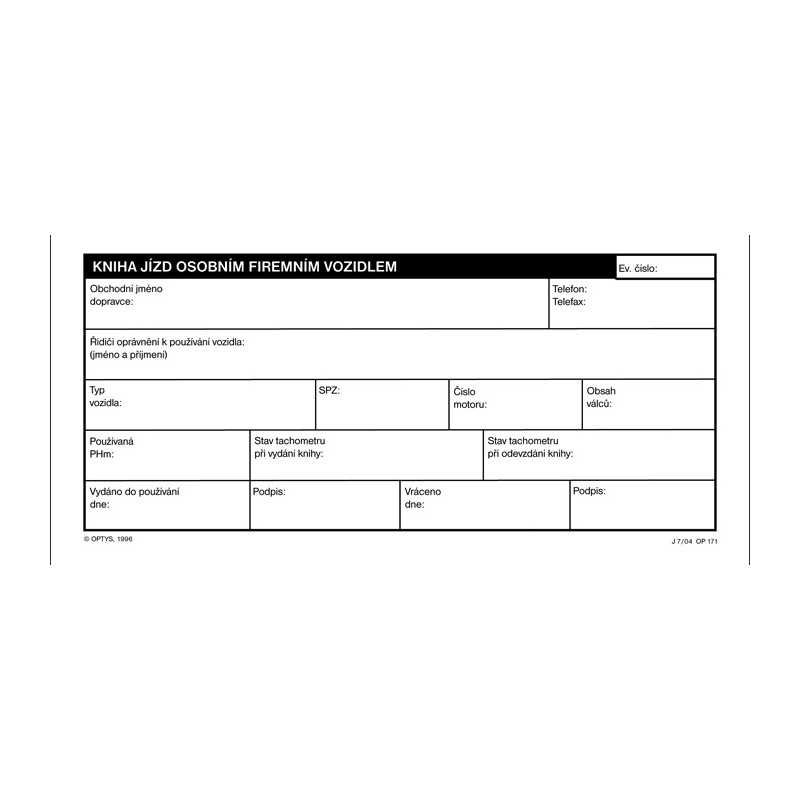 Optys 1171 kniha jízd osobního firemního vozidla 32 listů 1/3 A4