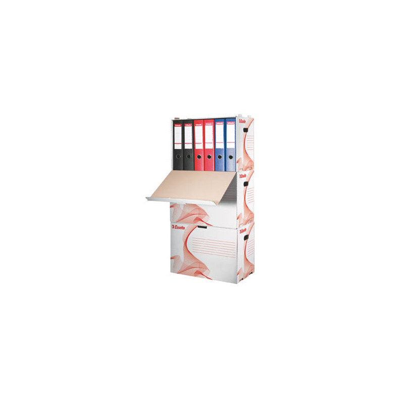 ideální řešení pro archivaci dokumentů v pořadačích, s integrovaným předním otevíráním pro snadný přístup k pořadačům bez nutnosti vyjmout celý kontejner z archivu, kapacita: 6 pořadačů nebo stojanů na časopisy šíře hřbetu 75 nebo 80 mm, stohovatelný s dalšími kontejnery tohoto typu díky speciálním zarážkám spojující kontejnery nad sebou, pevná konstrukce s dvojitými bočnicemi, které kontajner ještě více zpevňují, rozměry: 525 x 338 x 306 mm, vyrobeno ze 100% recyklované vlnité lepenky, 100% recyklovatelné, certifikováno FSC®