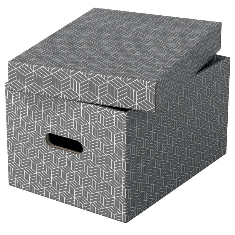 Krabice úložná Esselte - M / šedá / 360 x 265 x 205 mm / s otvory / 3 ks
