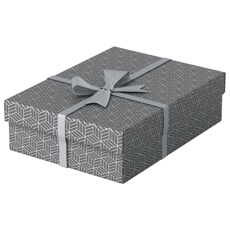 Stylové a moderní lepenkové úložné boxy se sundávacím víkem. Ideální pro zabalení dárků nebo pokud potřebujete doma rychle vytvořit úložný prostor. Sada tří boxů stejné velikosti, které můžete použít samostatně, uložit na polici nebo do krychlových úložných jednotek a skladovat v nich drobnosti, jako jsou fotografie nebo osobní dokumenty. Vše v nich bude úhledně zorganizované a snadno dohledatelné. A pokud box převážete stuhou, budete mít dárkovou krabičku! Až si obdarovaný svůj dárek rozbalí, může si krabičku ponechat k ukládání věcí, takže vlastně darujete 2 dárky v jednom. Vyrobeno z pevné 100% recyklované a 100% recyklovatelné vlnité lepenky s certifikací FSC. Otíratelný povrch má dvoubarevný geometrický design, který dodá vašemu ukládání věcí styl. Dodávají se v plochém balení a lze je rychle a snadno sestavit. Strany se během sestavování složí na sebe, což boxu dodá dvojnásobnou pevnost, aby byl pevný a jeho obsah dostatečně chráněný. Rozměry: 265 x 100 x 360 mm