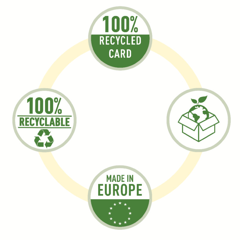 Stylové a moderní lepenkové úložné boxy se sundávacím víkem. Ideální pro zabalení dárků nebo pokud potřebujete doma rychle vytvořit úložný prostor. Sada tří boxů stejné velikosti, které můžete použít samostatně, uložit na polici nebo do krychlových úložných jednotek a skladovat v nich drobnosti, jako jsou fotografie nebo osobní dokumenty. Vše v nich bude úhledně zorganizované a snadno dohledatelné. A pokud box převážete stuhou, budete mít dárkovou krabičku! Až si obdarovaný svůj dárek rozbalí, může si krabičku ponechat k ukládání věcí, takže vlastně darujete 2 dárky v jednom. Vyrobeno z pevné 100% recyklované a 100% recyklovatelné vlnité lepenky s certifikací FSC. Otíratelný povrch má dvoubarevný geometrický design, který dodá vašemu ukládání věcí styl. Dodávají se v plochém balení a lze je rychle a snadno sestavit. Strany se během sestavování složí na sebe, což boxu dodá dvojnásobnou pevnost, aby byl pevný a jeho obsah dostatečně chráněný. Rozměry: 320 x 315 x 365 mm