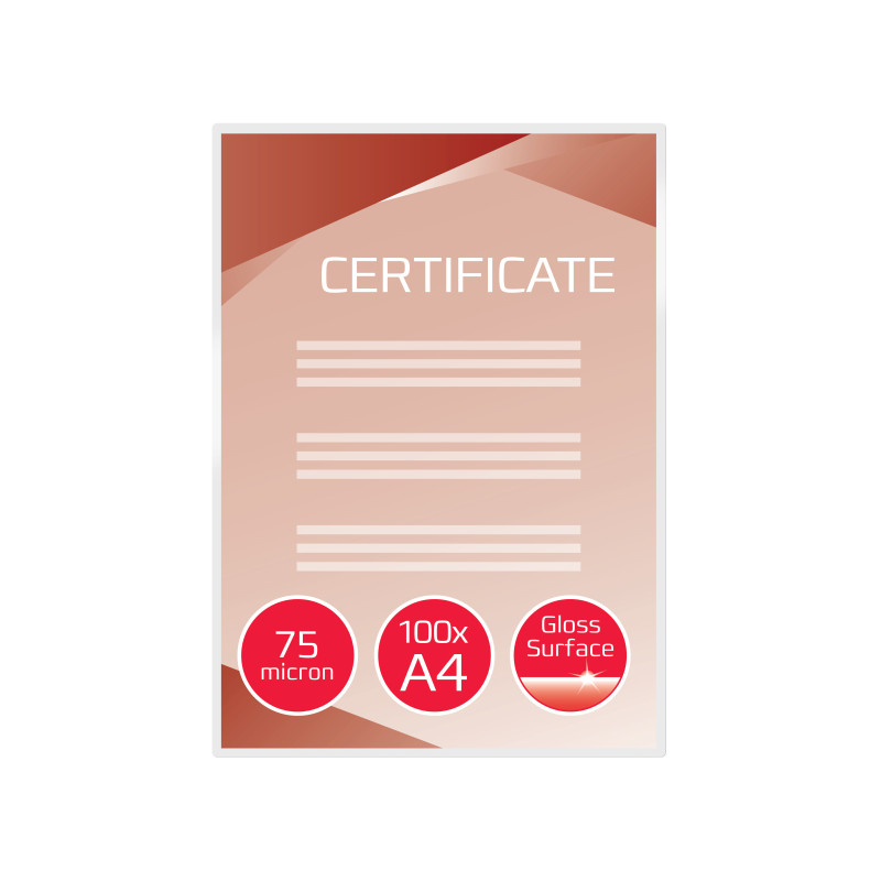 Praktické řešení pro každodenní použití chránící a zdokonalující hodnotné listy prezentací, referenčních seznamů, produktových listů, upozornění apod. Lesklé provedení, tloušťka 2 × 75 mikronů. Formát A4. Balení: 100 kusů.