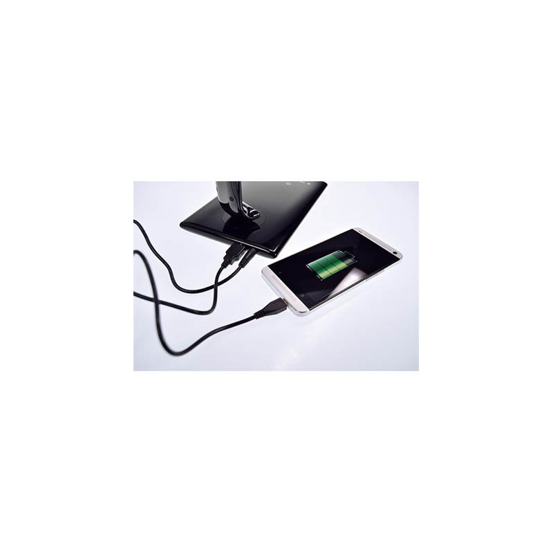 možnost volby 5 barev světla – teplá, neutrální bílá, bílá a studená bílá (3000K-6000K), stmívatelná - plynulá regulace jasu, dotykové spínání, maximálně flexibilní - ohebné rameno, otočná základna a náklopná hlava, příkon: max. 12W, světelný tok: max. 700lm, USB napájecí zdířka pro nabíjení telefonů (5V, 1000mA), USB kabel součástí, rozměry: cca 420 x 360 x 125mm, energetická třída: G