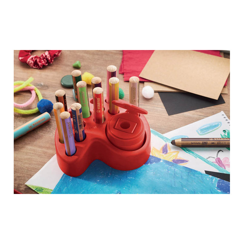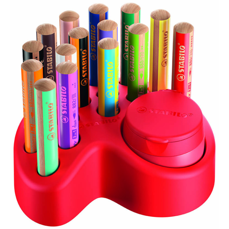 Pastelky STABILO® Woody multifunkční / stolní set / 15 barev + ořezávátko