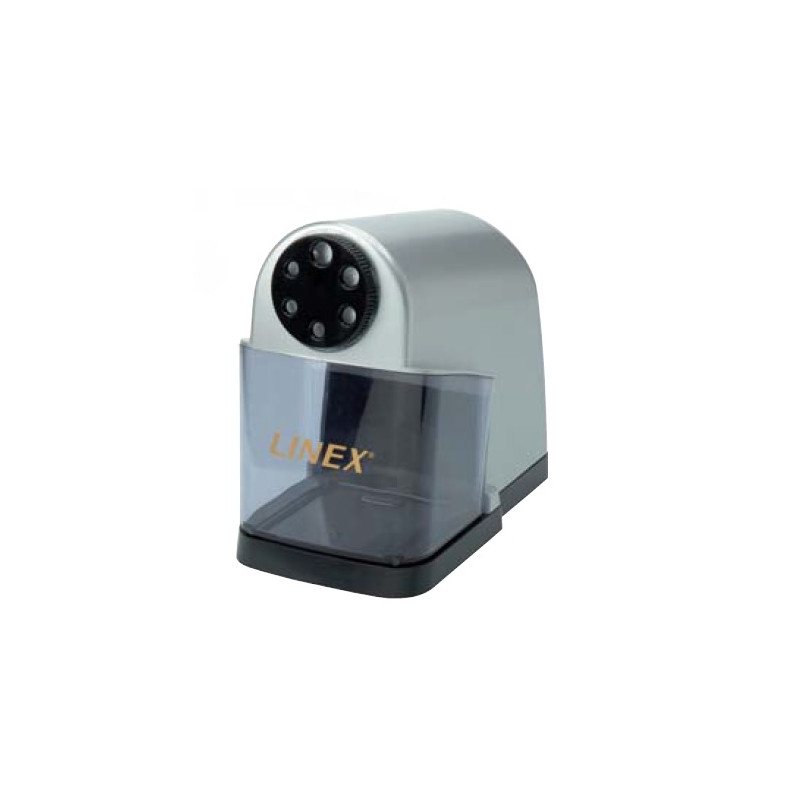 stolní elektrické ořezávátko pro snadné, rychlé, bezpečné a dokonalé ořezání kulatých, trojhranných nebo hexagonálních tužek a pastelek, 6 otvorů - pro tužky s průměrem od 6,5 - 11 mm, ideální do škol, na úřady, do kanceláří, díky čtyřem přísavkám je během použití stabilní, ořezávání může začít, pouze pokud je zásobník správně nasazen, a zastaví se automaticky, jakmile je tužka ořezaná, pkud hrozí přehřátí z důvodu dlouhotrvajícího použití, přístroj se automaticky zastaví, síťové napájení 230V