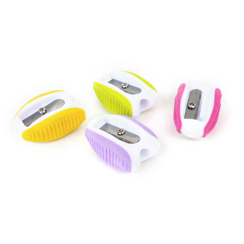 plastové ořezávátko s gumovým úchytem, vhodné do penálu, barevný mix