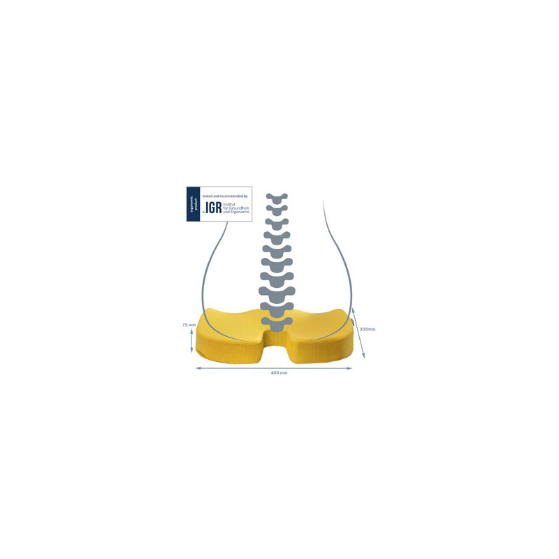 stylový a ergonomicky navržený podsedák pro maximální pohodlí při sezení na jakékoli židli, podporuje zdravé držení těla, zlepšuje krevní oběh a snižuje tlak na páteř tím, že minimalizuje kontakt mezi kostrčí a sedákem židle, pomáhá snižovat nepohodlí, únavu a ztuhlost, které mohou být důsledkem dlouhodobého sezení a zdravotních potíží, jako je ischias, ideální pro použití doma, v kanceláři nebo v autě jako plně mobilní řešení zdravého sezení, potah sedáku lze sejmout a z hygienických důvodů prát v ruce, rozměry 355 x 75 x 455 mm