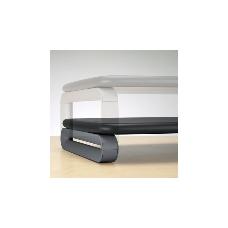 Stojan pod monitor Plus se systémem SmartFit (TM) nastavuje výšku monitoru do optimálního úhlu a výšky, pomáhá snižovat podráždění očí a napětí krku. Rozšiřuje využitelný prostor na pracovním stole tím, že umožňuje ukládání pod plošinou. Systém SmartFit (TM) umožňuje nastavit výšku monitoru ke svým osobním požadavkům. Univerzální design platforma se hodí do každého monitoru do 21 "a 36 kg. Výška se přizpůsobí 1 z 3 svislých nastavení bez použití nářadí.