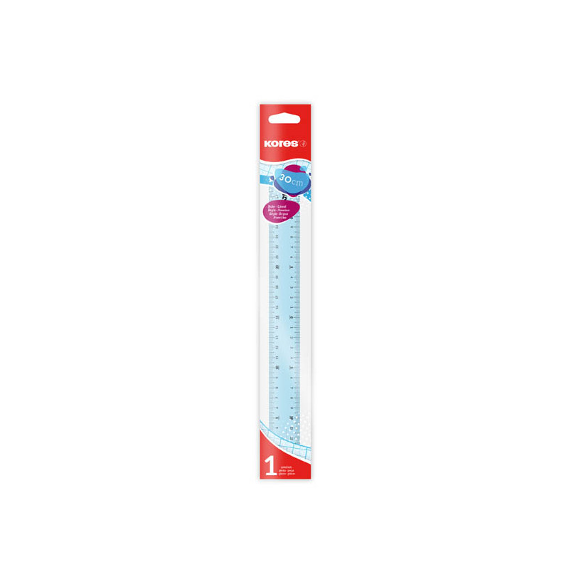 Pravítko 30 cm Kores - transparentní/ mix 2 barev