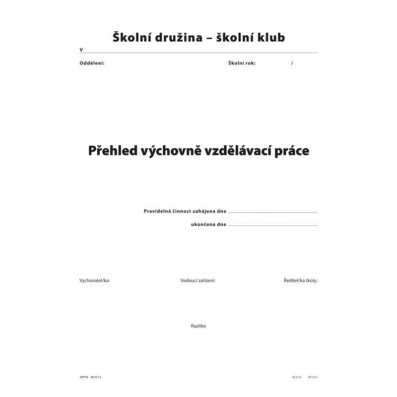 Přehled výchovně vzdělávací práce pro školní družiny a kluby A4 / 56 str.