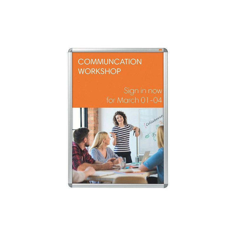 Clip rámy Nobo se snadno používají a umožňují vystavovat plakáty a informace chráněné proti vlivům počasí. Antireflexní fólie z PVC je chrání před prachem a špínou, vkusný hliníkový rám zaručuje konzistentní a elegantní vzhled. Používejte vývěsky pro vytvoření koordinovaného, profesionálně vypadajícího prostředí. 700 × 1000 mm