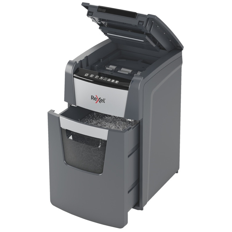 Skartovačka s automatickým podáváním až 130 listů A4 (80 g/m²) nabízí také manuální plnění až 6 listů. Mikro řez P-5 (2 × 15 mm) zajišťuje vysokou úroveň zabezpečení a technologie proti zaseknutí papíru přispívá k plynulému a spolehlivému provozu.
