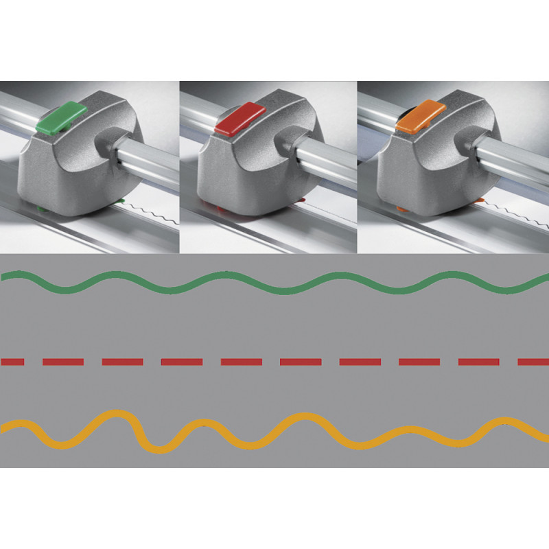 inovace bezpečných kotoučových řezaček s ergonomickým tvarem řezací hlavy a vodící lišty pro perfektní řez, rozšířená kovová pracovní plocha s tištěnými DIN formáty, ostrý horní kotoučový a spodní nůž, automatický přítlak, dva příložníky, snadnější výměna řezací hlavy, set třech řezacích hlav pro dekorační řezy volitelně k dostání pro oba typ, řezný výkon 507 - 8 listů, 508 - 6 listů, DIN: A4, délka řezu: 320 mm, výška řezu: 0,8 mm/8 listů papíru (80 g/m2), rozměry stolu: 449 x 209 mm, pro více druhů materiálů: papír, karton, textil, fotografie a fólie, natištěné formáty a úhly + 2 nové příložníky s dělením v mm, k dokoupení sada kreativních nožů, váha: 1 kg