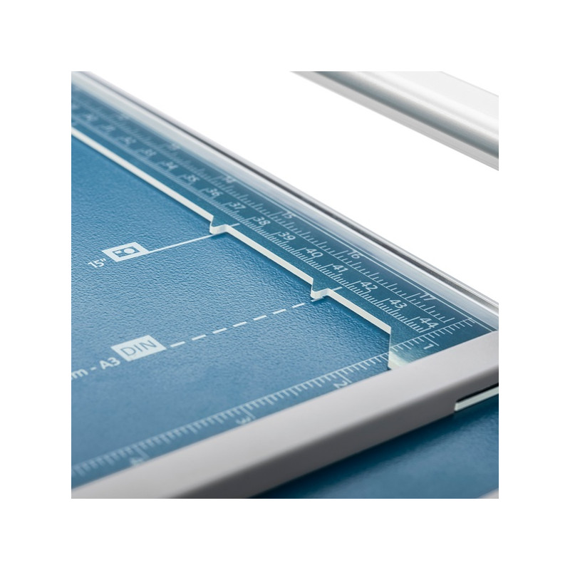 pro více druhů materiálů: papír, karton, textil, fotografie a fólie, natištěné formáty a úhly + 2 příložníky s dělením v mm, automatický přítlak, váha: 1,2 kg