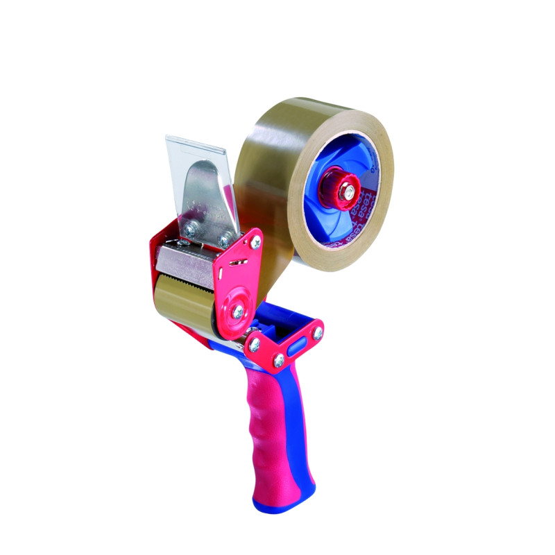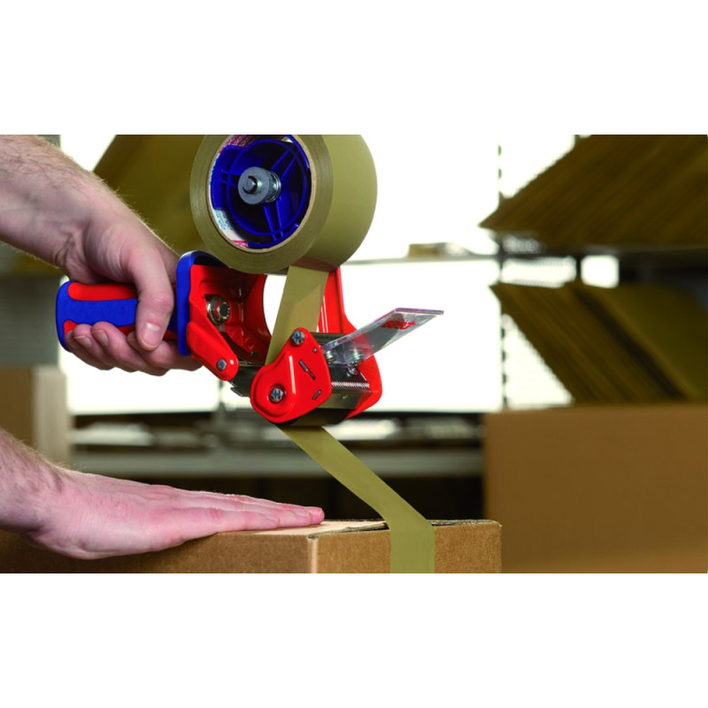 robustní ruční odvíječ s kovovým rámem na balicí pásky pro čisté a pohodlné lepení všech typů balení, rukojeť z měkké pryže pro bezpečné a komfortní držení, zatahovací nůž zaručuje bezpečné používání a zabraňuje zranění, použitelný pro pásky s kotoučkem do šíře 50 mm a délkou max. 66 m, gumový váleček usnadňuje lepení pásky, nastavitelná odvíjecí síla, vhodný pro celodenní používání, dodáván bez pásky