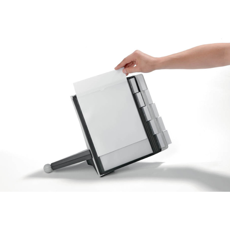 SHERPA TABLE 10 5632 - stabilní stolní stojan na 10 oboustranně využitelných rámečků s dokumenty, rozšiřitelný s pomocí přídavných modulů na 20 i více rámečků, díky speciálnímu materiálu spodní části je extrémně stabilní a nepopojíždí ani na skleněné desce pultu či vitríny, obsah:1 stojan + 10 rámečků