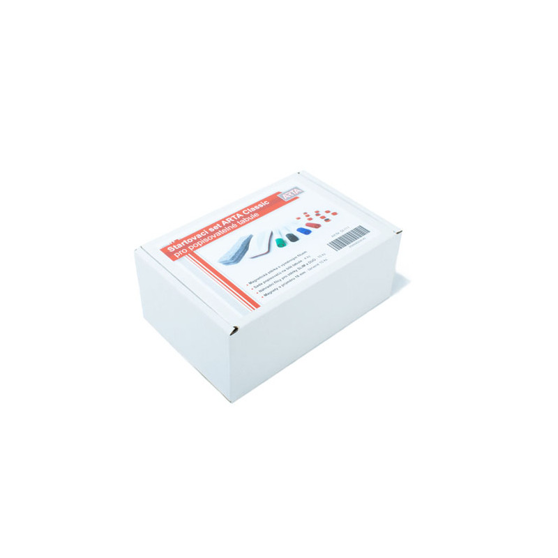 sada obsahuje: popisovače ARTA, 10x magnetů ARTA prům. 24 mm, mazací stěrku ARTA, náhradní filcy ARTA