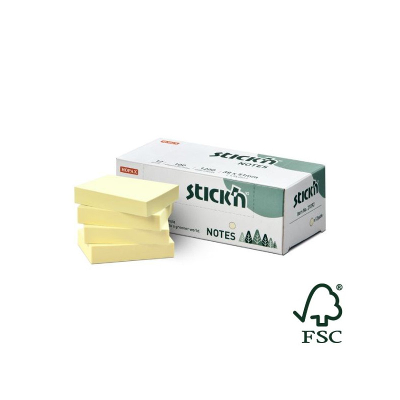 Samolepicí bločky Stick´n by Hopax FSC - 38 x 51 mm / 12 x 100 l / pastel. žlutá