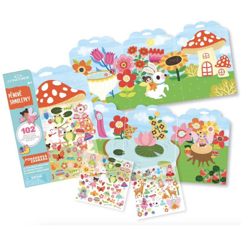 pěnové samolepky pro opakované použití s motivem pohádkové zahrady, drží na hladké ploše bez lepidla, lze je tedy opakovaně používat a přelepovat na hrací ploše nebo na různá hladká místa, děti si při hře rozvíjí jemnou motoriku a zároveň si užijí plno zábavy, skvělá aktivita pro vytváření vlastního zábavného světa, balení obsahuje 116 pěnových samolepek a oboustrannou rozkládací hrací plochu