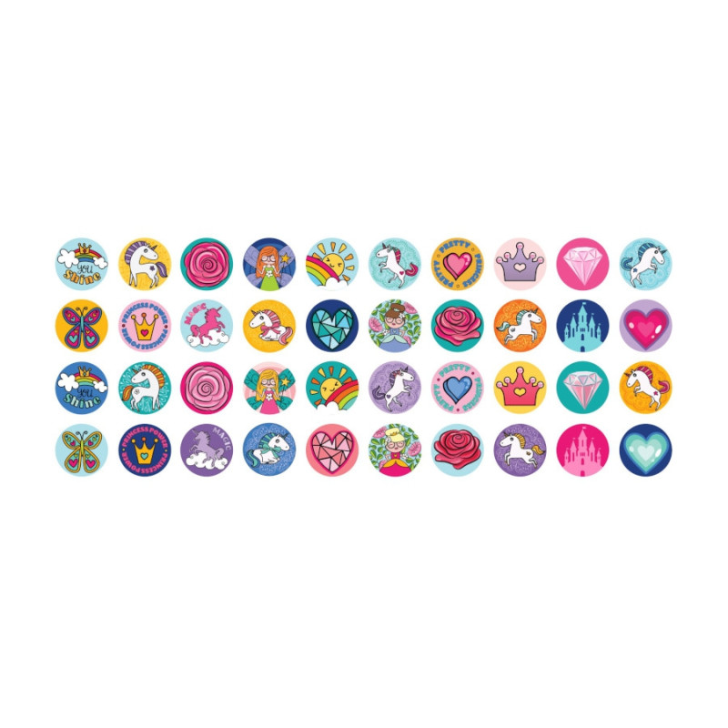 samolepky s razítkem nabízí širokou škálu barevných motivů jednorožců a princezen, sada obsahuje 320 samolepek – 160 samolepek v razítku a 160 samolepek v náhradní náplni, využijte svou kreativitu a vytvořte si vlastní obrázky pomocí těchto samolepek, ozdobte si školní sešity, pozvánky, stůl nebo pokojíček – možnosti jsou neomezené, lze je jednoduše použít na hladké povrchy, snadno se sloupávají a lze je znovu nalepit, což umožňuje opakované používání, objevte radost z tvoření s našimi samolepkami s razítkem