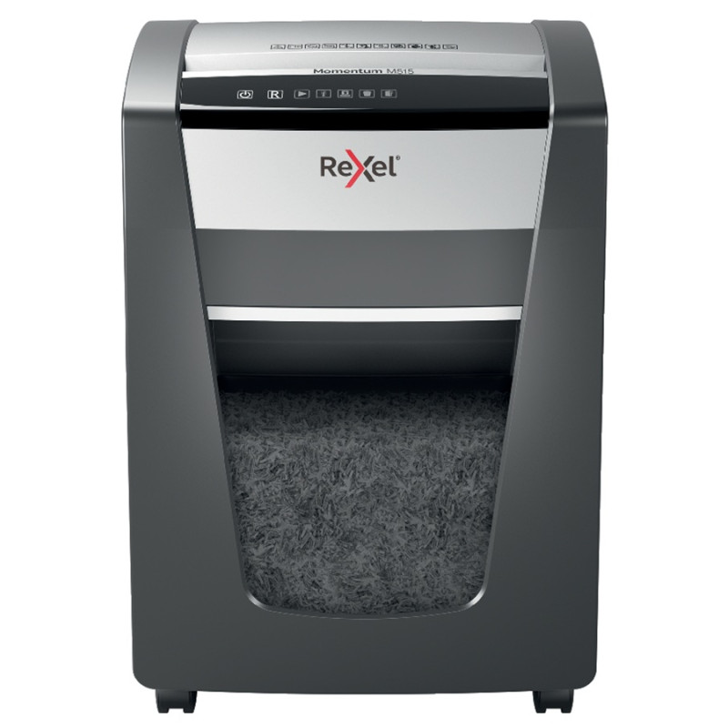 Skartovačka Rexel Momentum M515 skartuje až 15 listů papíru najednou a nabízí nejvyšší úroveň zabezpečení P-5 s mikro řezem 2 × 15 mm. Díky extra dlouhému skartovacímu cyklu až 4 hodiny je ideální pro náročnější kancelářské použití.