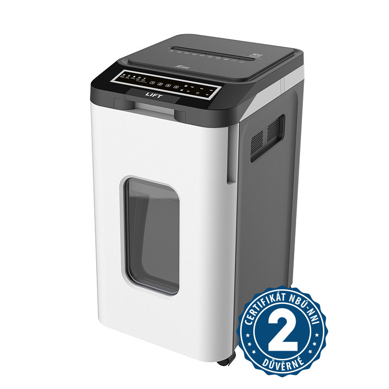 Typ řezu: příčný Velikost řezu: 2 × 12 mm Stupeň utajení: P-5 Kapacita: až 400 listů (70 g/m²) Objem koše: 53 l Automatický podavač Automatické zapnutí/vypnutí Zpětný chod při zaseknutí LED kontrolky (zapnutí, přehřátí, zaseknutí, otevřený koš) Pojezdová kolečka Maximální doba nepřetržitého provozu: až 240 minut Šířka vstupu: 240 mm Další informace