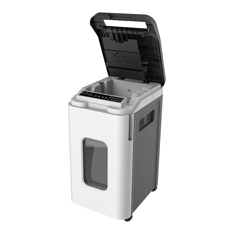 Skartovačka AT-350AF je výkonná automatická skartovačka ideální pro kancelářské použití. Díky zásobníku zvládne automaticky skartovat až 400 listů papíru (70 g/m²) a poradí si i s plastovými kartami, sponkami a CD. Příčný řez o velikosti částic 2 × 12 mm v kombinaci se stupněm utajení P-5 zajišťuje vysokou úroveň ochrany citlivých dokumentů.