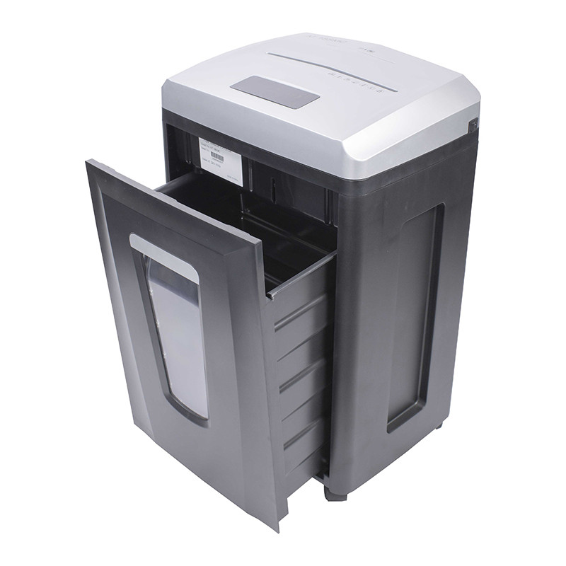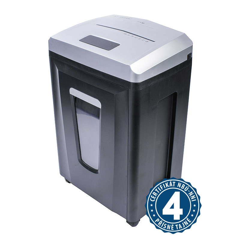 Skartuje papír, sešívací sponky, plastové karty a CD/DVD Rozměry: 365 × 265 × 555 mm Hmotnost: 15 kg
