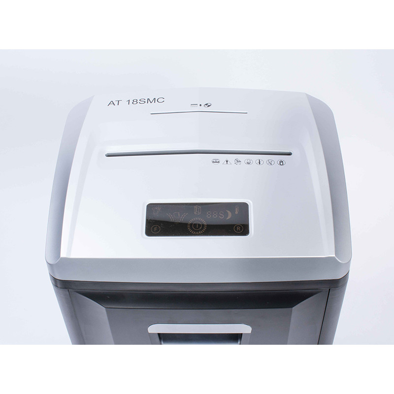Skartovací stroj AT-18 SMC je profesionální skartovačka robustního provedení určená pro kanceláře, které vyžadují maximální stupeň zabezpečení. Nabízí ergonomický design, dotykové ovládání a pokročilé bezpečnostní funkce pro spolehlivý provoz.