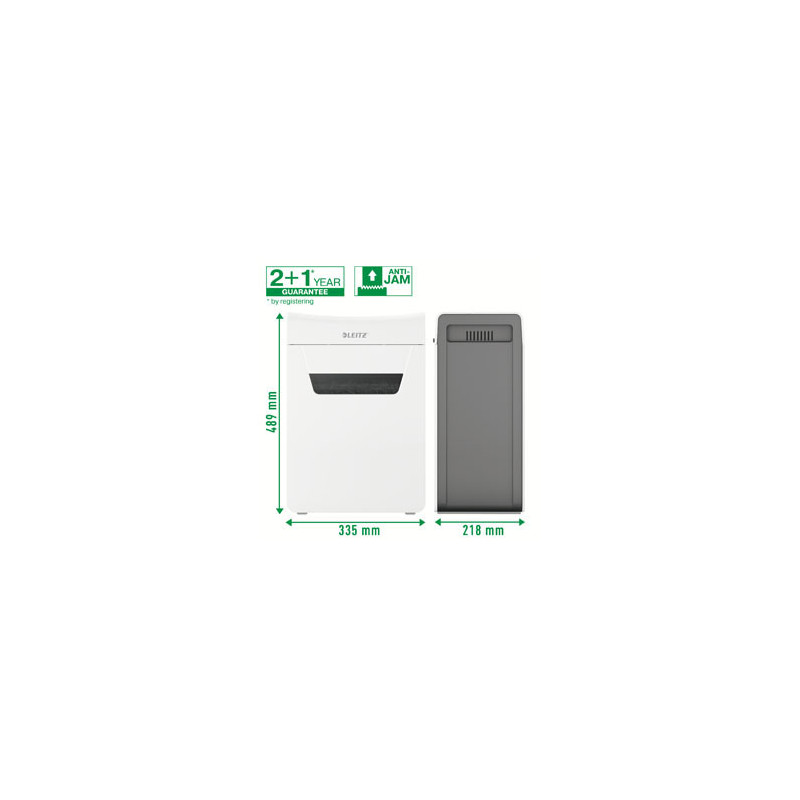 Typ řezu: příčný Stupeň utajení: DIN P-4 Kapacita: až 10 listů (80 g/m²) Objem koše: 18 l (až na 150 listů) Super tichý provoz (při pravidelném používání olejových papírů Leitz) Nepřetržitý provoz: 10 minut Technologie proti zaseknutí papíru se zpětným chodem Dotykové ovládání LED indikace přehřátí Kompaktní design vhodný i pod stůl Výsuvný koš s průhledným okénkem Další informace