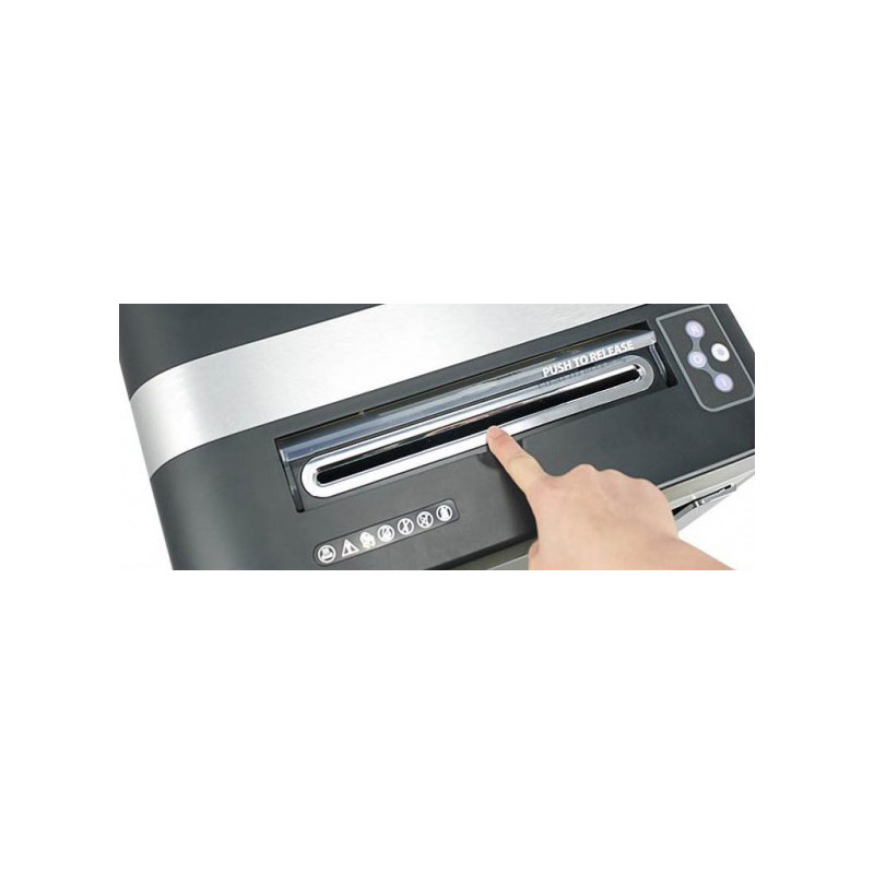 Vlastnosti Typ řezu: křížový Velikost řezu: 3,8 × 40 mm Stupeň utajení: D (důvěrné) Kapacita: až 25 listů (70 g/m²) Objem koše: 35 l Hlučnost: cca 55 dB Dotykové ovládání Nepřetržitý provoz až 120 minut Samostatný vstup pro plastové karty/CD Kolečka pro snadnou manipulaci Další informace Skartuje papír, sešívací sponky, kancelářské svorky, plastové karty a CD/DVD Rozměry: 440 × 290 × 730 mm Hmotnost: 25 kg