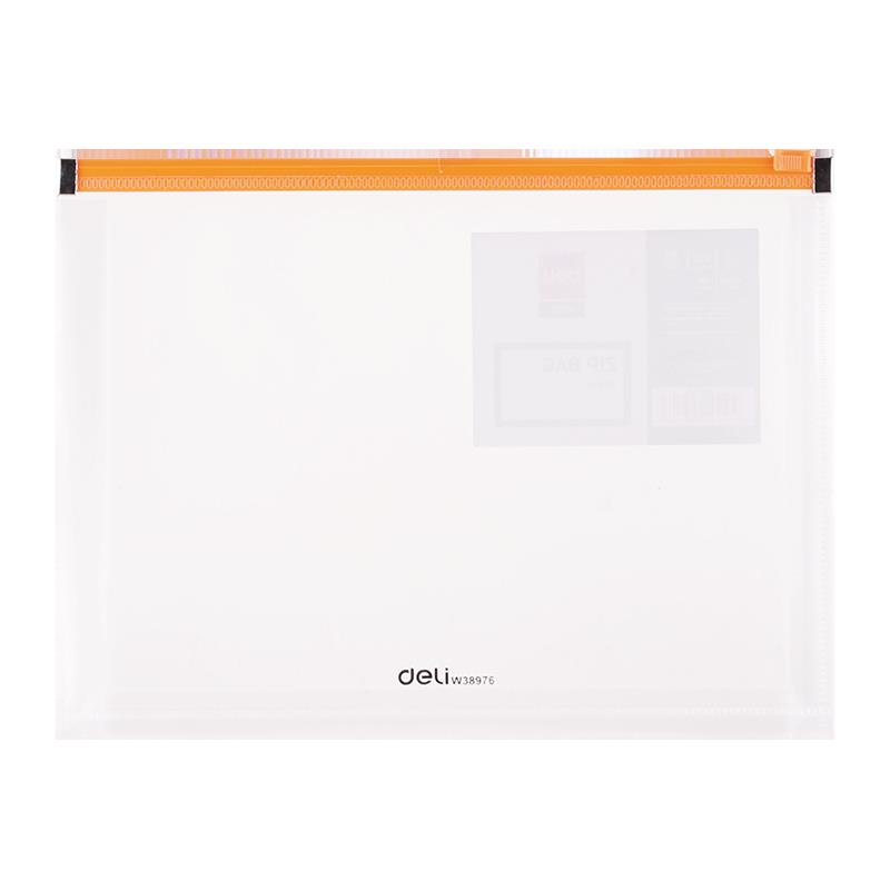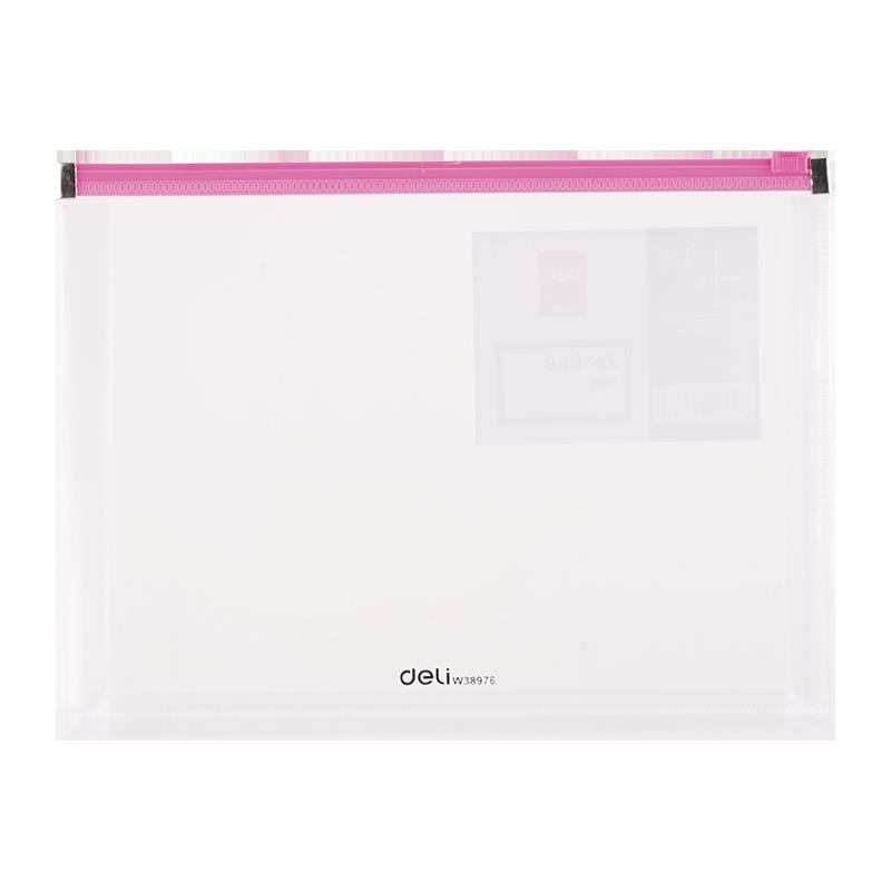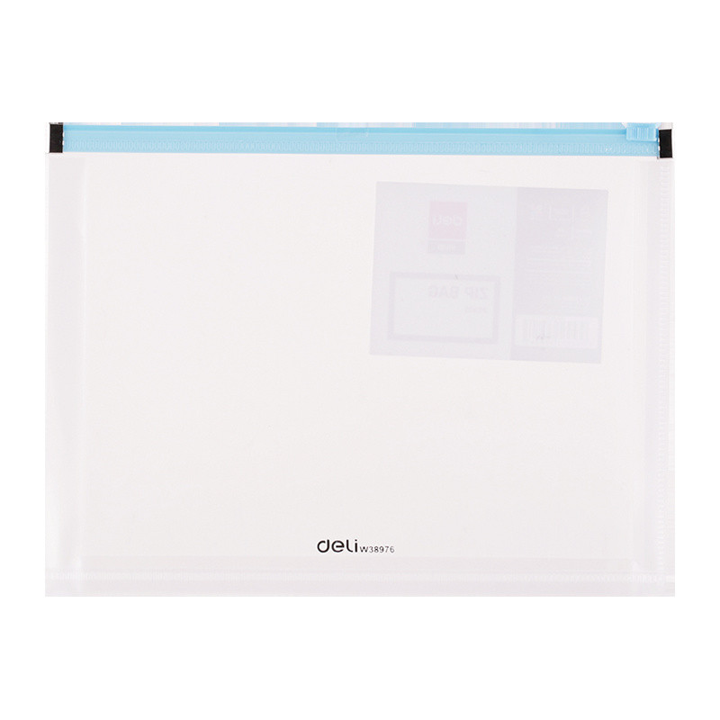 transparentní obal na spisy z odolného polypropylenu o síle 180mic a zavíráním na zip s rozšířenými boky a kovovými zarážkami pro dlouhou výdrž obalu
