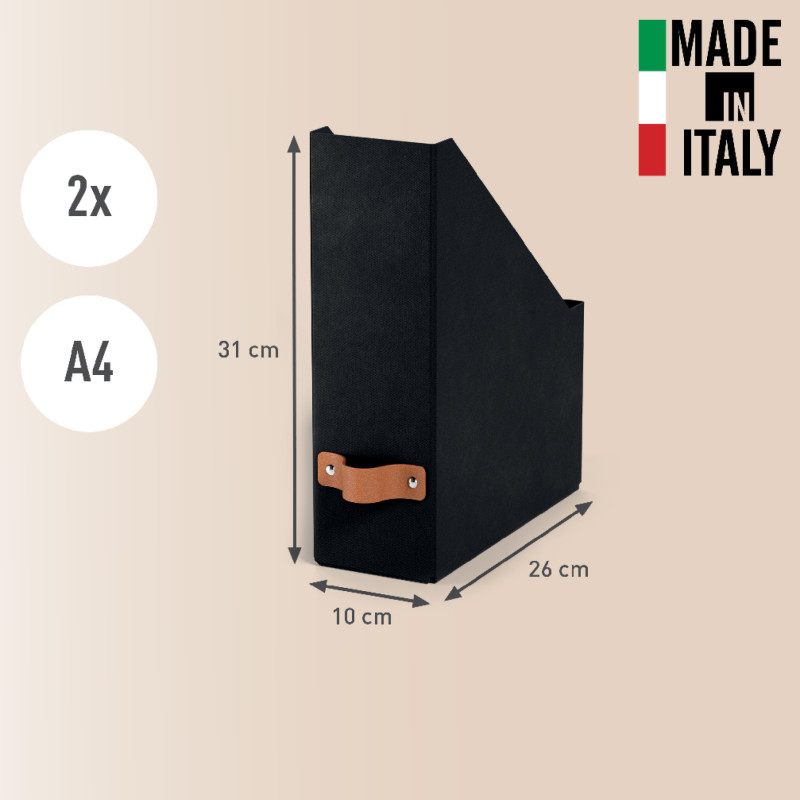 Sada dvou kartonových stojanů na časopisy, katalogy, dokumenty formátu A4. Rychlé a snadné sestavení. 100% recyklovaný karton. Rozměr: 100 × 310 × 260 mm.