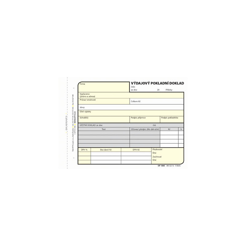 Optys 1083 výdajový pokladní doklad 100 listů NCR A6