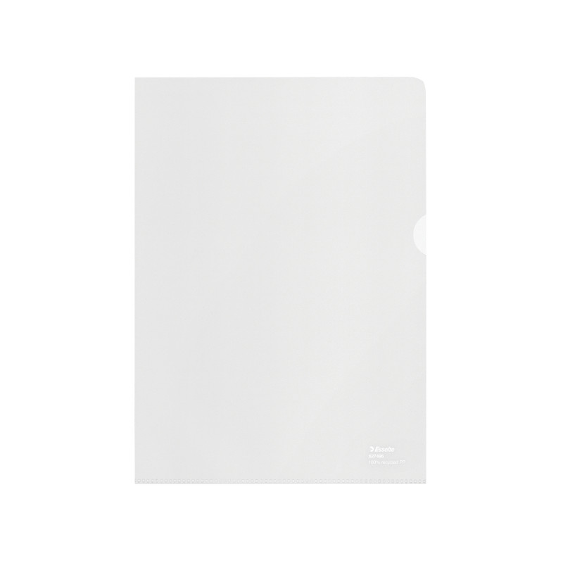 Ekologické L desky na dokumenty A4 vyrobené ze 100% recyklovaného PP, vhodné pro ochranu a organizaci dokumentů doma i v práci, celý produkt je znovu použitelný a recyklovatelný, baleno v 100% recyklované kartonové krabici, vyrobeno v Evropě, recyklovaný obsah potvrzený UL, formát A4, síla 100 mic, balení 100 ks.