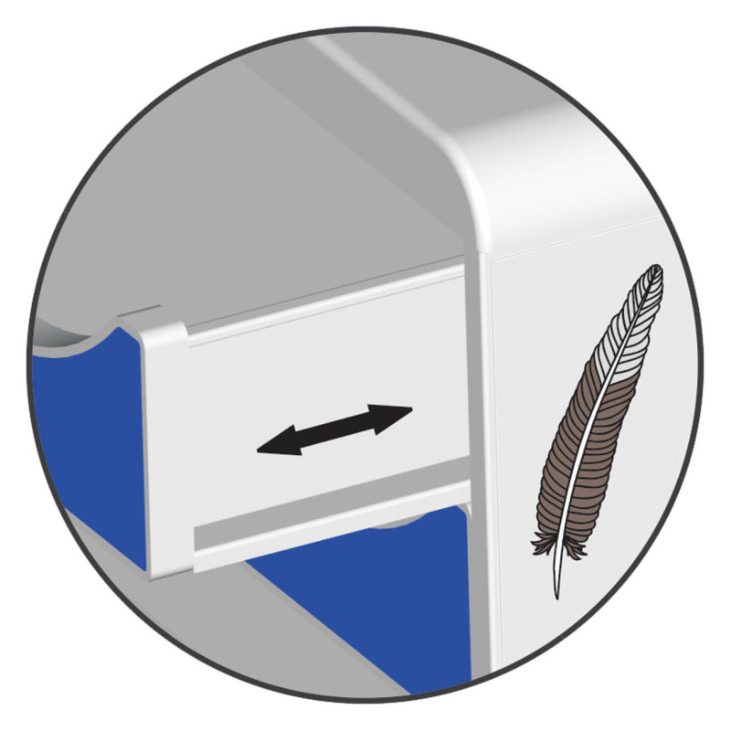 atraktivní box s duhovými zásuvkami, formát na šířku pro úzké prostory, ideální pro archivaci tabulek a dokumentů na šířku, polootevřené zásuvky pro snadnou manipulaci, popisovatelné štítky v balení, kombinovatelný s řadou Iderama, vhodný pro kanceláře, home office i školy, A4 maxi, rozměry 278 × 271 × h 347 mm, materiál PS, orientace na výšku, vkládání A4 kratší stranou, bílý korpus, 5 barevných zásuvek, lehký, odolný, stohovatelný, záruka 25 let