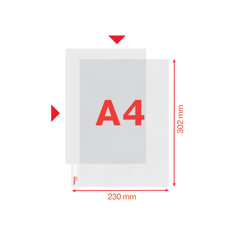 Odolná plastová kapsa s bočním a horním otvíráním pro snadný přístup k dokumentům, vhodná pro každodenní použití a 100% recyklovatelná, formát A4, síla 105 mic, balení 100 ks.