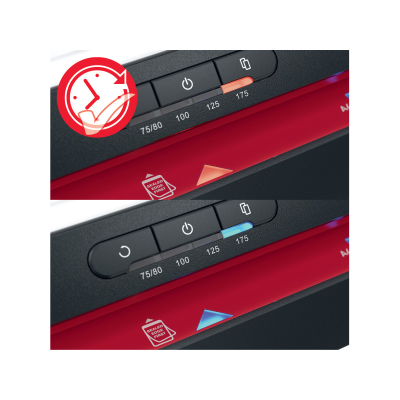 Laminace dokumentů až do formátu A3 Vhodný pro časté a objemné použití v kanceláři Rychlé nahřátí na provozní teplotu cca 1 minuta Laminace A4 (75 mic) přibližně za 23 sekund Možnost zrychlení laminace až o 33 % při použití speciálních kapes GBC Nastavení tloušťky laminovacích kapes: 75 / 100 / 125 mic Intuitivní ovládací panel pro snadné nastavení Funkce zpětného chodu pro uvolnění zaseknuté kapsy SMART LED systém (světelná i zvuková signalizace) LED indikace správného vložení dokumentu Automatické vypnutí po 15 minutách nečinnosti Kvalitní a hladký výsledek laminace Elegantní design (černá barva s červenými detaily)